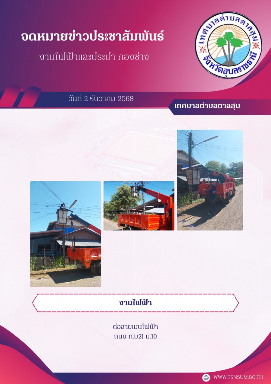 นางวรรณภา แก้วพรหม นายกเทศมนตรีตำบลตาลสุม มอบหมายให้ กองช่าง ซ่อมไฟฟ้าสาธารณะและค่อสายเมน ถนน ทบ21 บ้านนามนหมู่ที่10 วันอังคาร, 02 ธันวาคม 2568 14:05 พิมพ์ อีเมล แสดงความคิดเห็น ***กรุณาแสดงความคิดเห็น ด้วยความสุภาพ เคารพต่อสิทธิของผู้อื่น ไม่ละเมิดต่อกฎหมาย และศีลธรรมอันดีของสังคม ข้อความ * ใส่ความคิดเห็นของคุณ... ชื่อ * อีเมล * URL เว็บไซต์ของคุณ (ถ้ามี) back to top