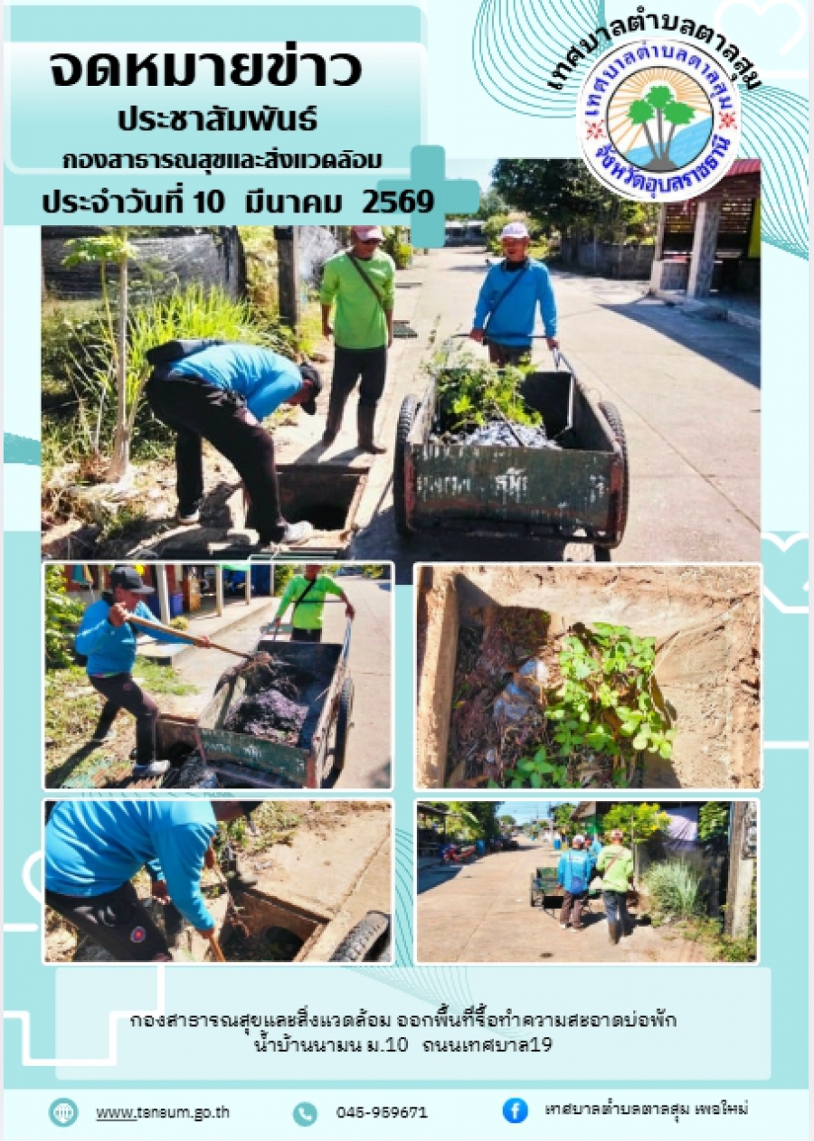 นางวรรณภา แก้วพรหม นายกเทศมนตรีตำบลตาลสุม มอบหมายให้กองสาธารณสุขและสิ่งแวดล้อม ตัดหญ้าทำความสะอาด ถนนเทศบาล 19 บ้านนามน หมู่ที่10 วันอังคาร, 10 มีนาคม 2569 13:39 พิมพ์ อีเมล แสดงความคิดเห็น ***กรุณาแสดงความคิดเห็น ด้วยความสุภาพ เคารพต่อสิทธิของผู้อื่น ไม่ละเมิดต่อกฎหมาย และศีลธรรมอันดีของสังคม ข้อความ * ใส่ความคิดเห็นของคุณ... ชื่อ * อีเมล * URL เว็บไซต์ของคุณ (ถ้ามี) back to top
