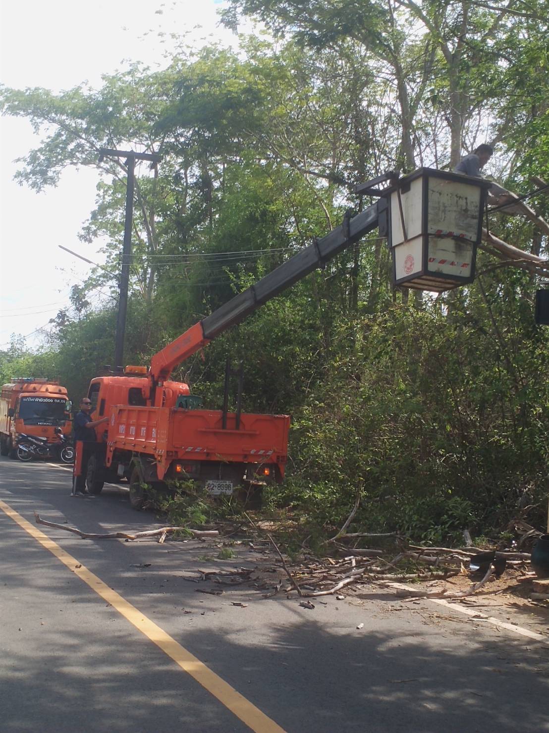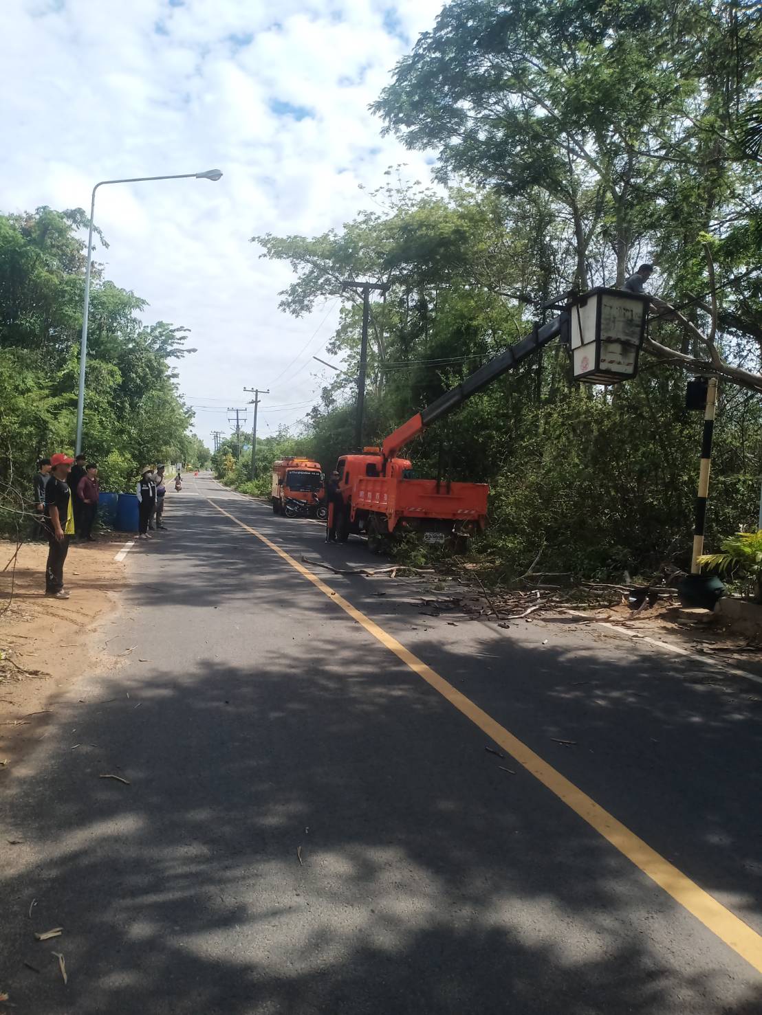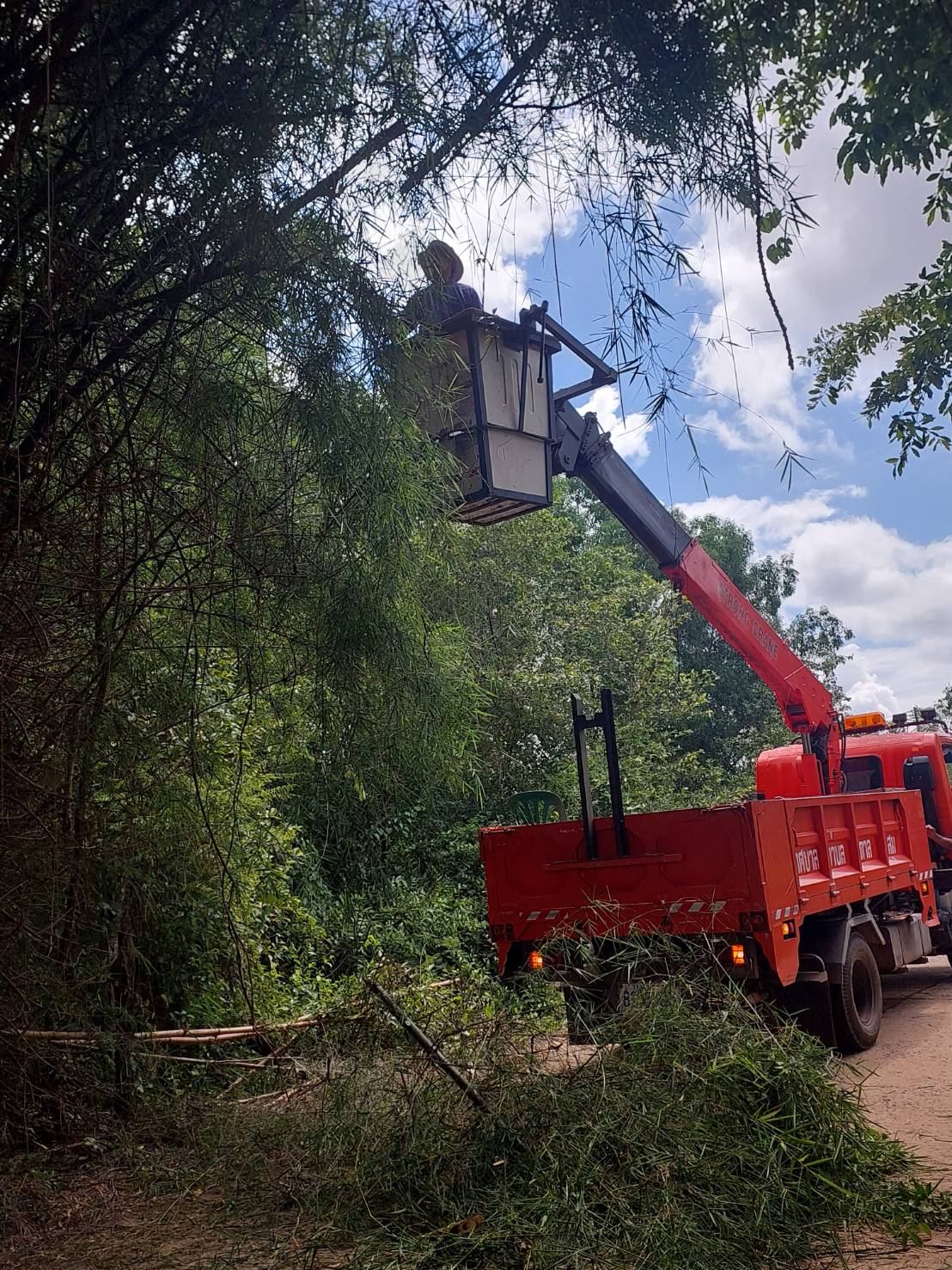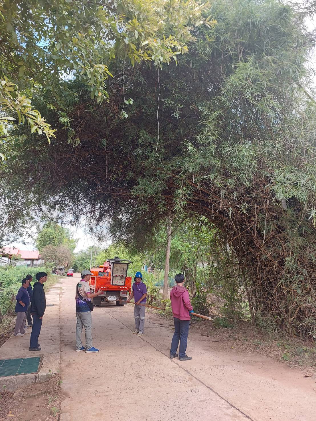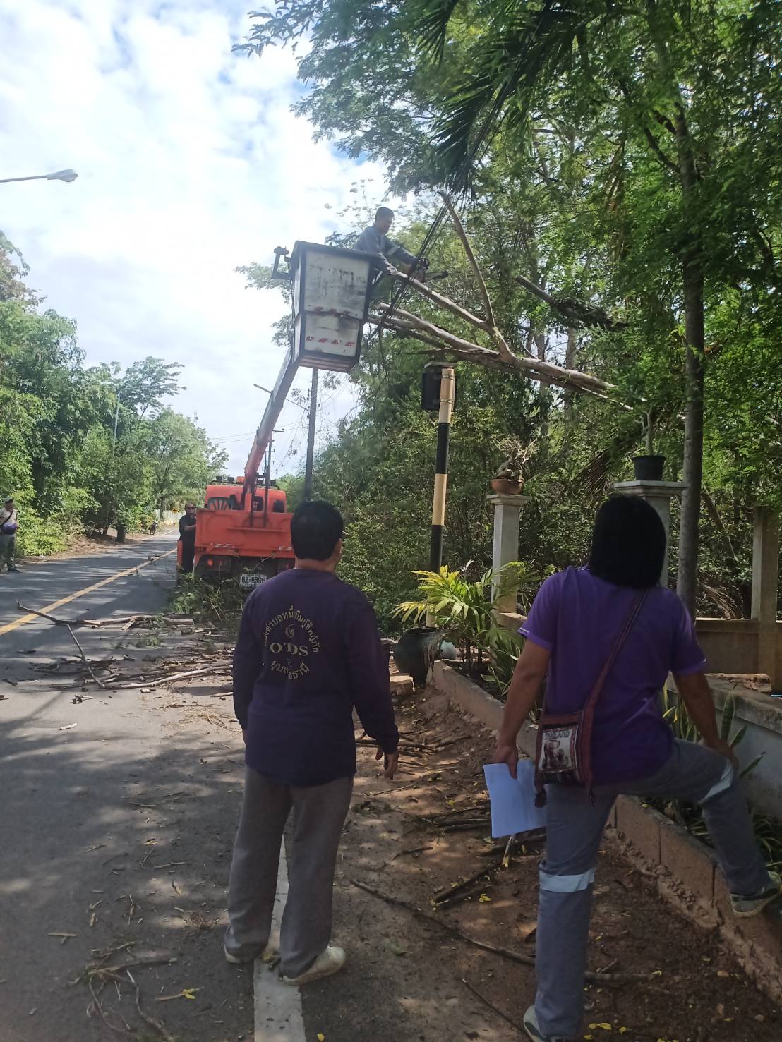 วันที่ 11 พฤษภาคม 2566 นางวรรณภา แก้วพรหม นายกเทศมนตรีตำบลตาลสุม มอบหมายงานให้ *****กองช่าง บูรนาการ ร่วมกับ กฟภ. ตัดแต่งกิ่งไม้ ออกจากแนวถนนและสายไฟ ทบ.26 บ้านนาห้วยแคน