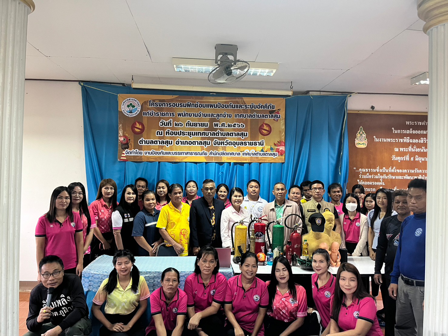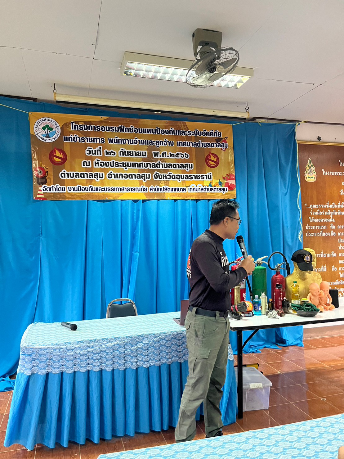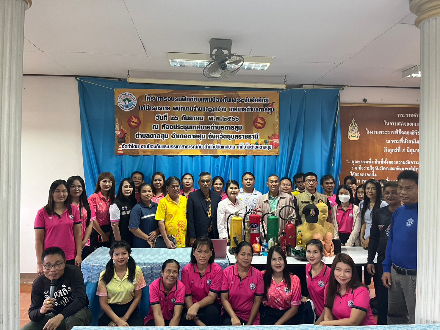 โครงการอบรมฝึกซ้อมแผนป้องกันและระงับอัคคีภัย แก่ข้าราชการ พนักงานและลูกจ้าง เทศบาลตำบลตาลสุม วันที่ 26 กันยายน พ.ศ.2566 ณ ห้องประชุมเทศบาลตำบลตาลสุม ตำบลตาลสุม อำเภอตาลสุม จังหวัดอุบลราชธานี จัดทำโดย งานป้องกันและบรรเทาสาธาารณภัย สำนักปลัด
