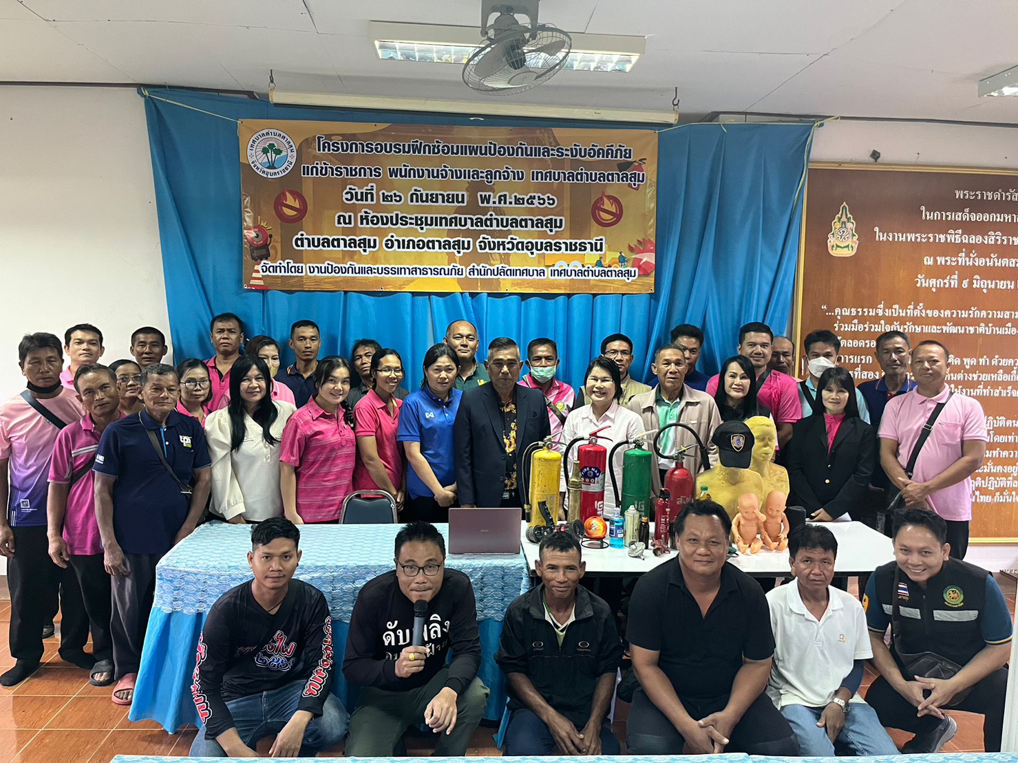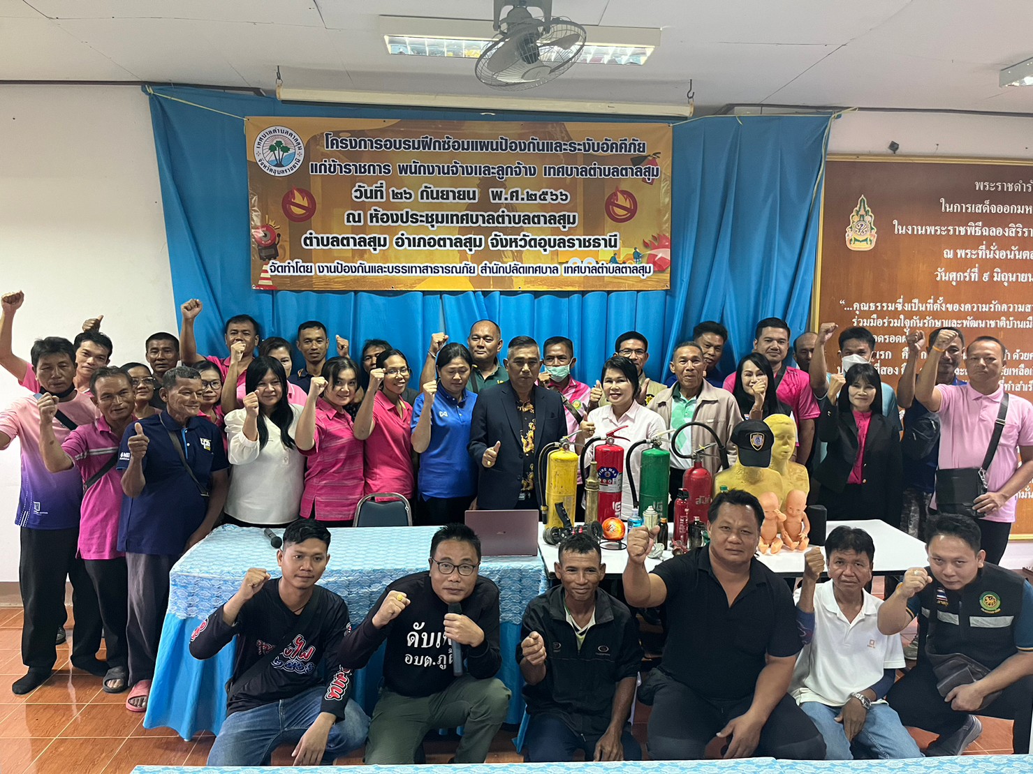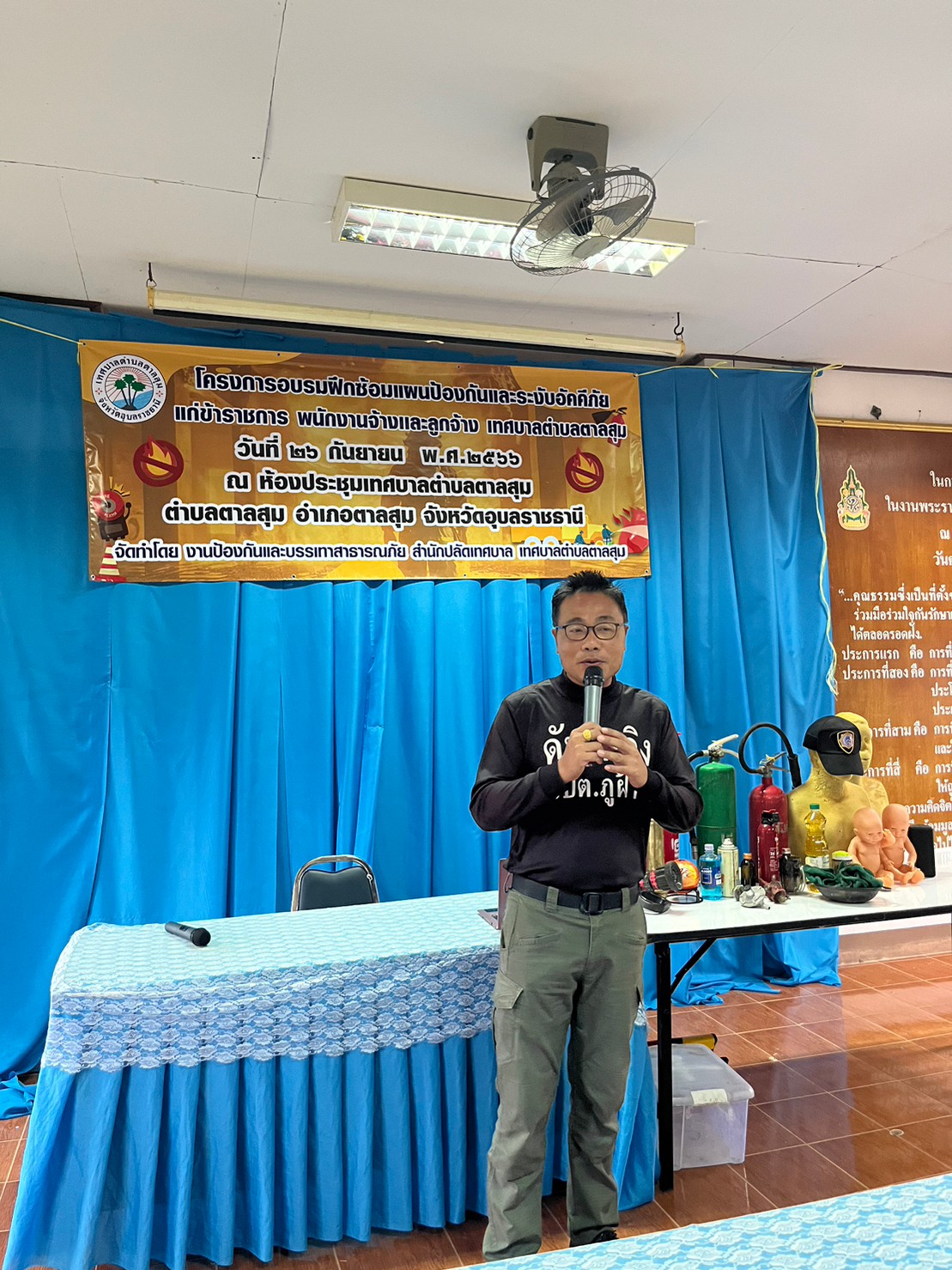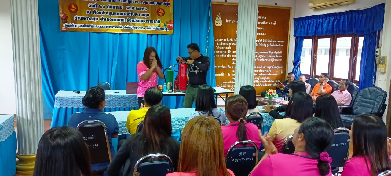 โครงการอบรมฝึกซ้อมแผนป้องกันและระงับอัคคีภัย แก่ข้าราชการ พนักงานและลูกจ้าง เทศบาลตำบลตาลสุม วันที่ 26 กันยายน พ.ศ.2566 ณ ห้องประชุมเทศบาลตำบลตาลสุม ตำบลตาลสุม อำเภอตาลสุม จังหวัดอุบลราชธานี จัดทำโดย งานป้องกันและบรรเทาสาธาารณภัย สำนักปลัด