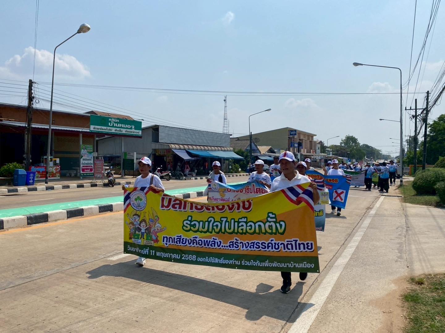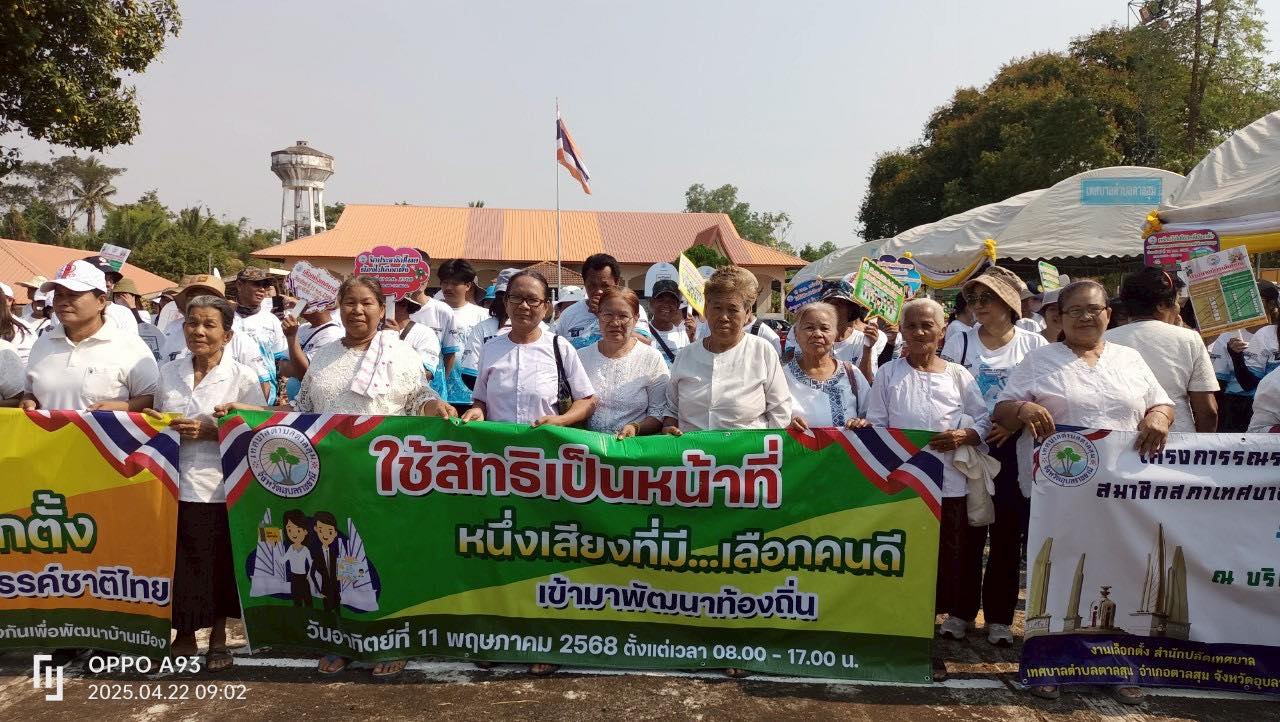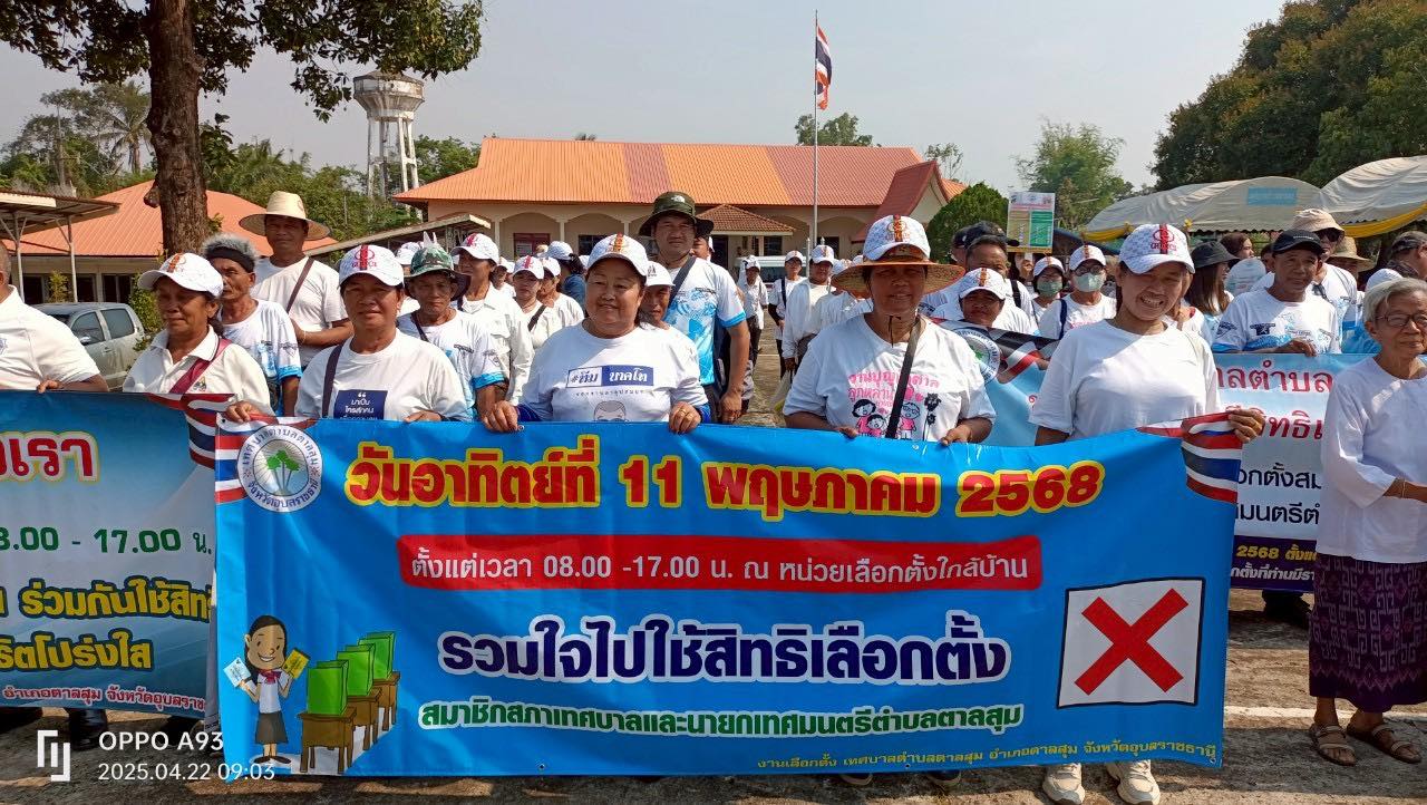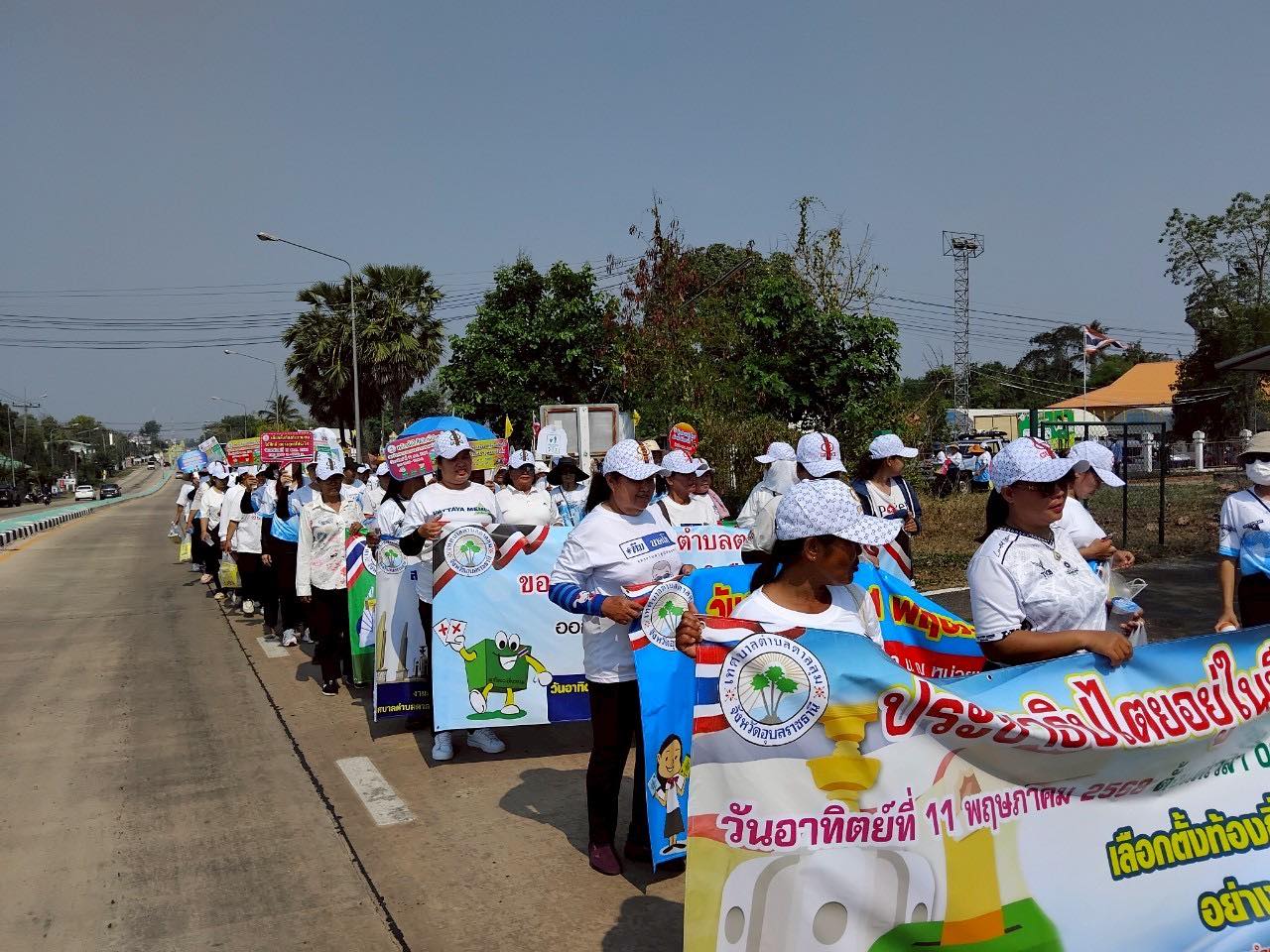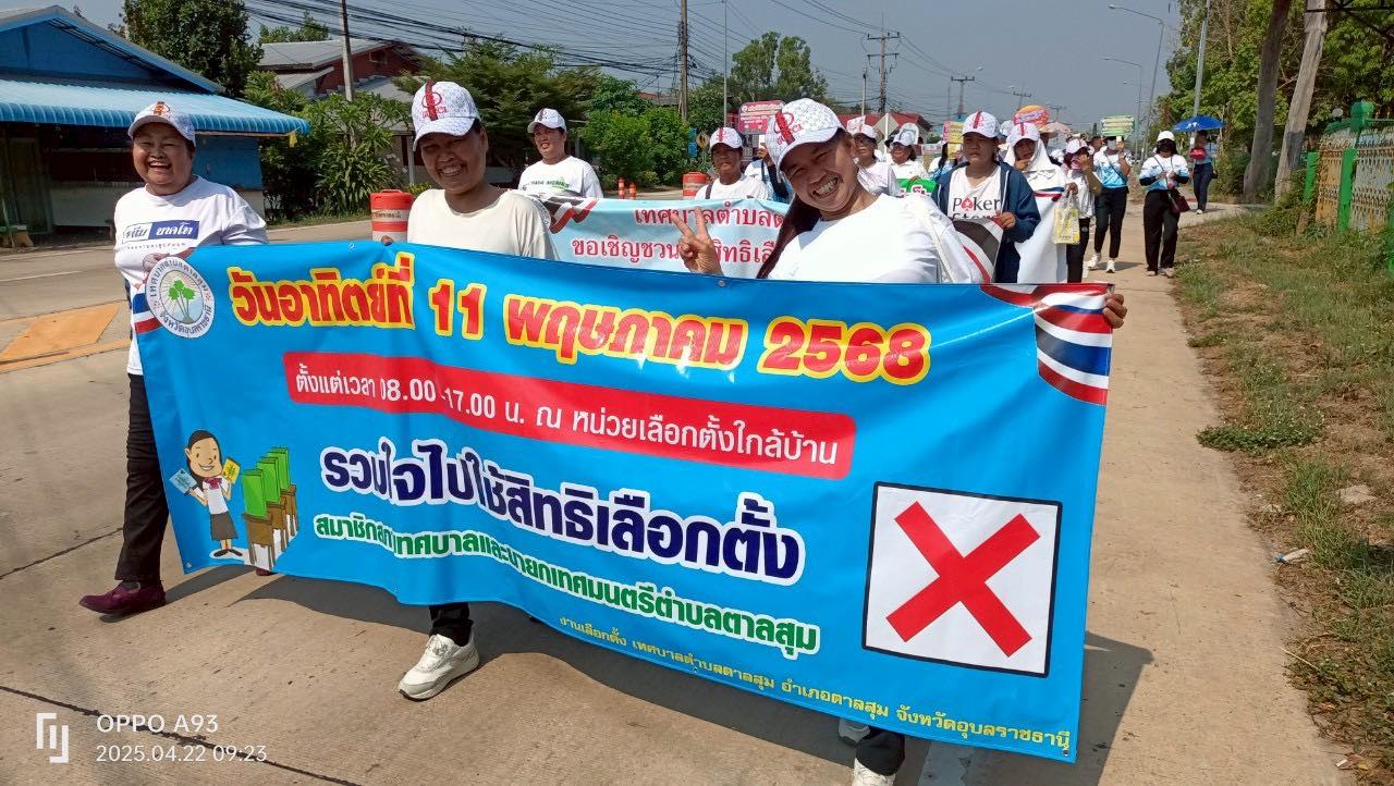กิจกรรมเดินรณรงค์ประชาสัมพันธ์โครงการรณรงค์ประชาสัมพันธ์การออกมาใช้สิทธิเลือกตั้งสมาชิกสภาเทศบาลตำบลตาลสุมและนายกเทศมนตรีตำบลตาลสุม