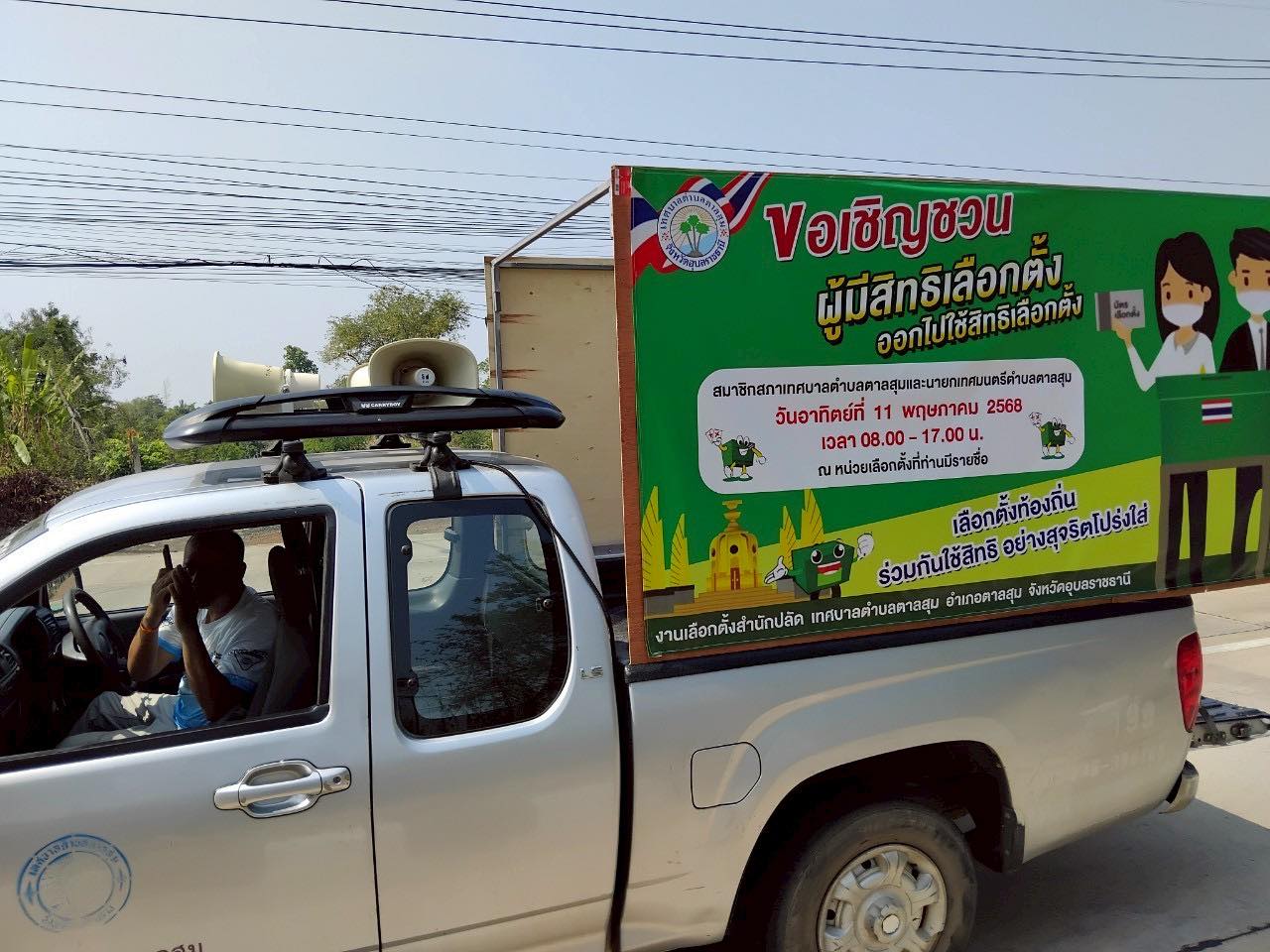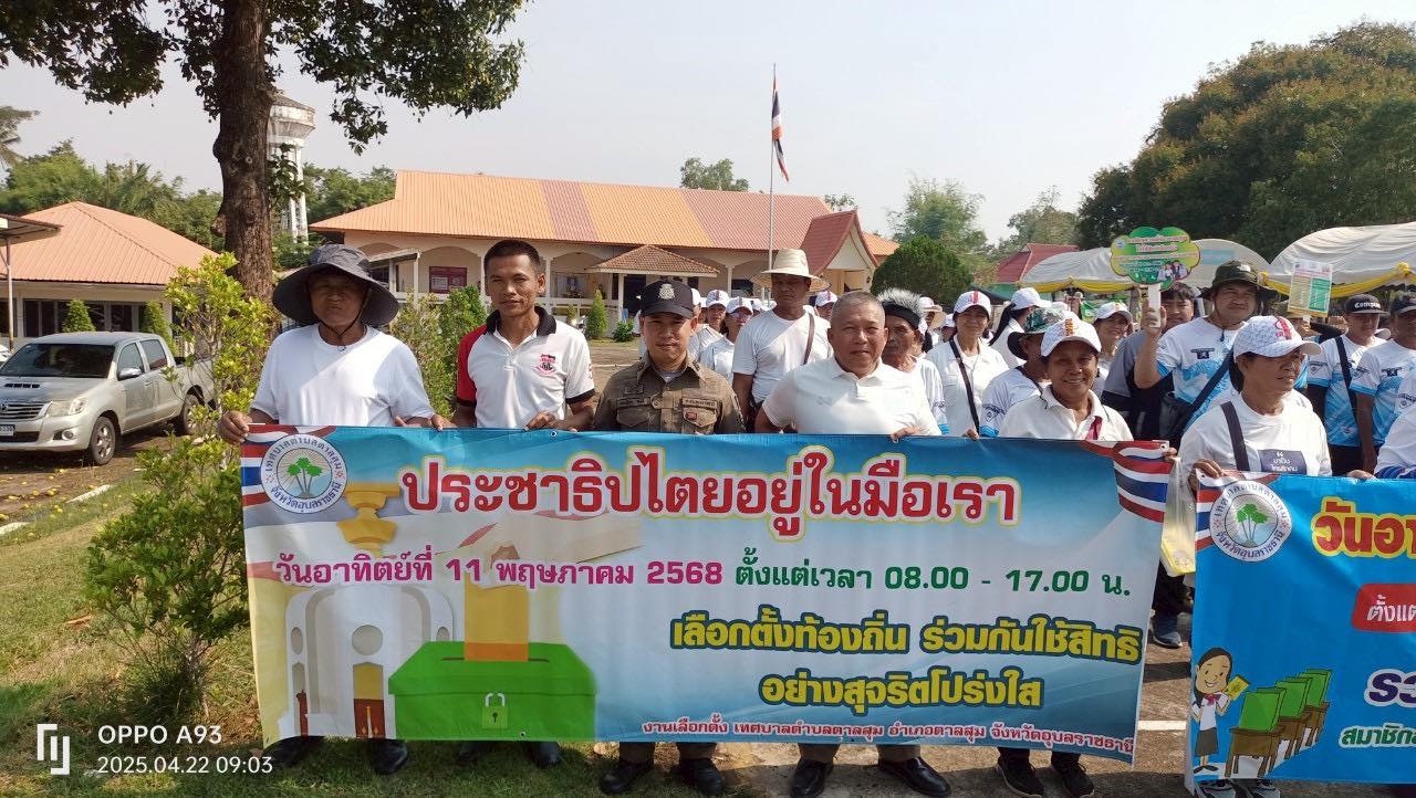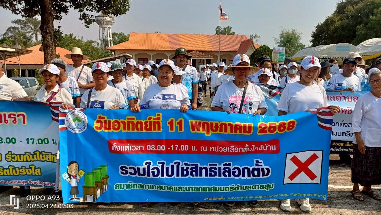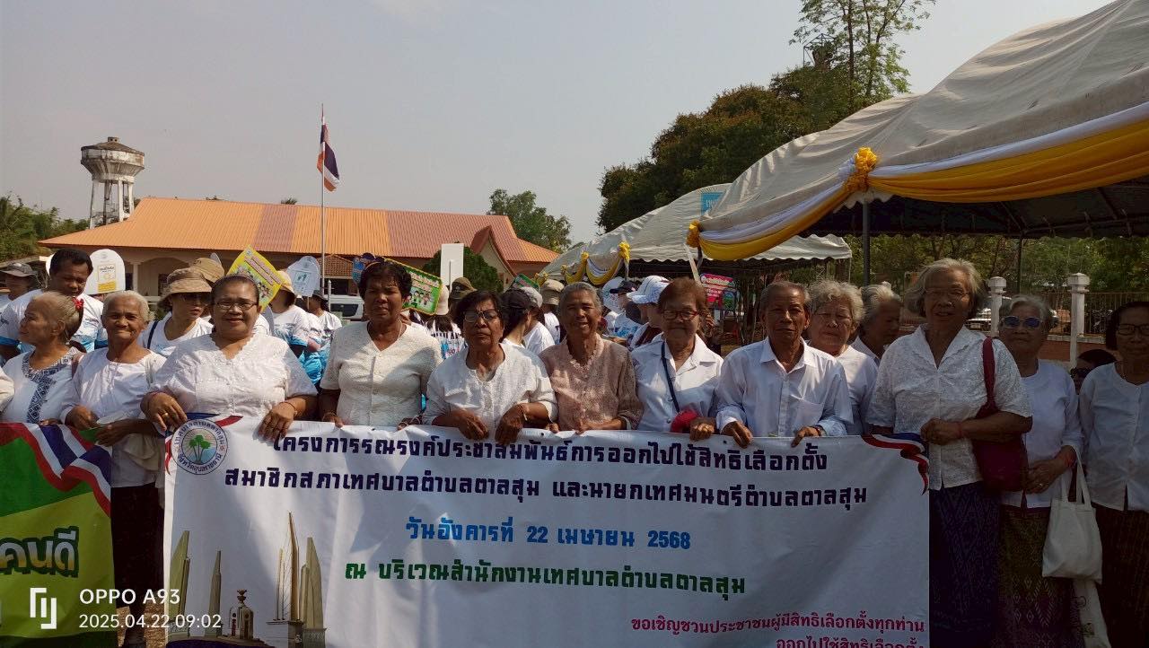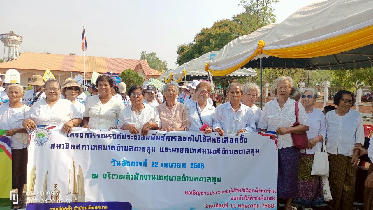 วันจันทร์, 28 เมษายน 2568 09:07เมื่อวันที่ 22 เมษายน 2568 นายวิรัตน์ แก้วพรหม ปลัดเทศบาลตำบลตาลสุม ปฏิบัติหน้าที่นายกเทศมนตรีตำบลตาลสุม ร่วมกับหน่วยงานราชการพ่อค้า ประชาชน อสม. อถล. โรงเรียนผู้สูงอายุ ร่วมกันเดินรณรงค์ประชาสัมพันธ์ โครงการรณรงค์ประชาสัมพันธ์การออกมาใช้สิทธิเลือกตั้งสมาชิกสภาเทศบาลตำบลตาลสุม และนายกเทศมนตรีตำบลตาลสุม เพื่อให้ประชาชนในเขตเทศบาลตำบลตาลสุมออกมาใช้สิทธิเลือกตั้ง ไม่นอนหลับทับสิทธิไม่ซื้อสิทธิขายเสียงออกไปใช้สิทธิเลือกตั้ง