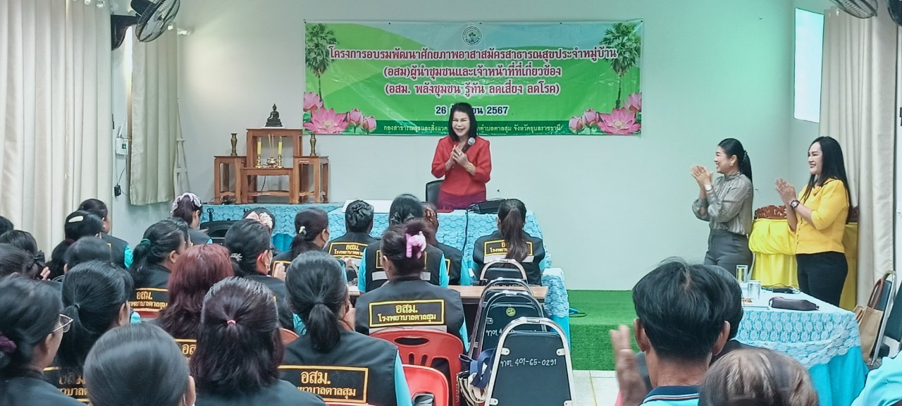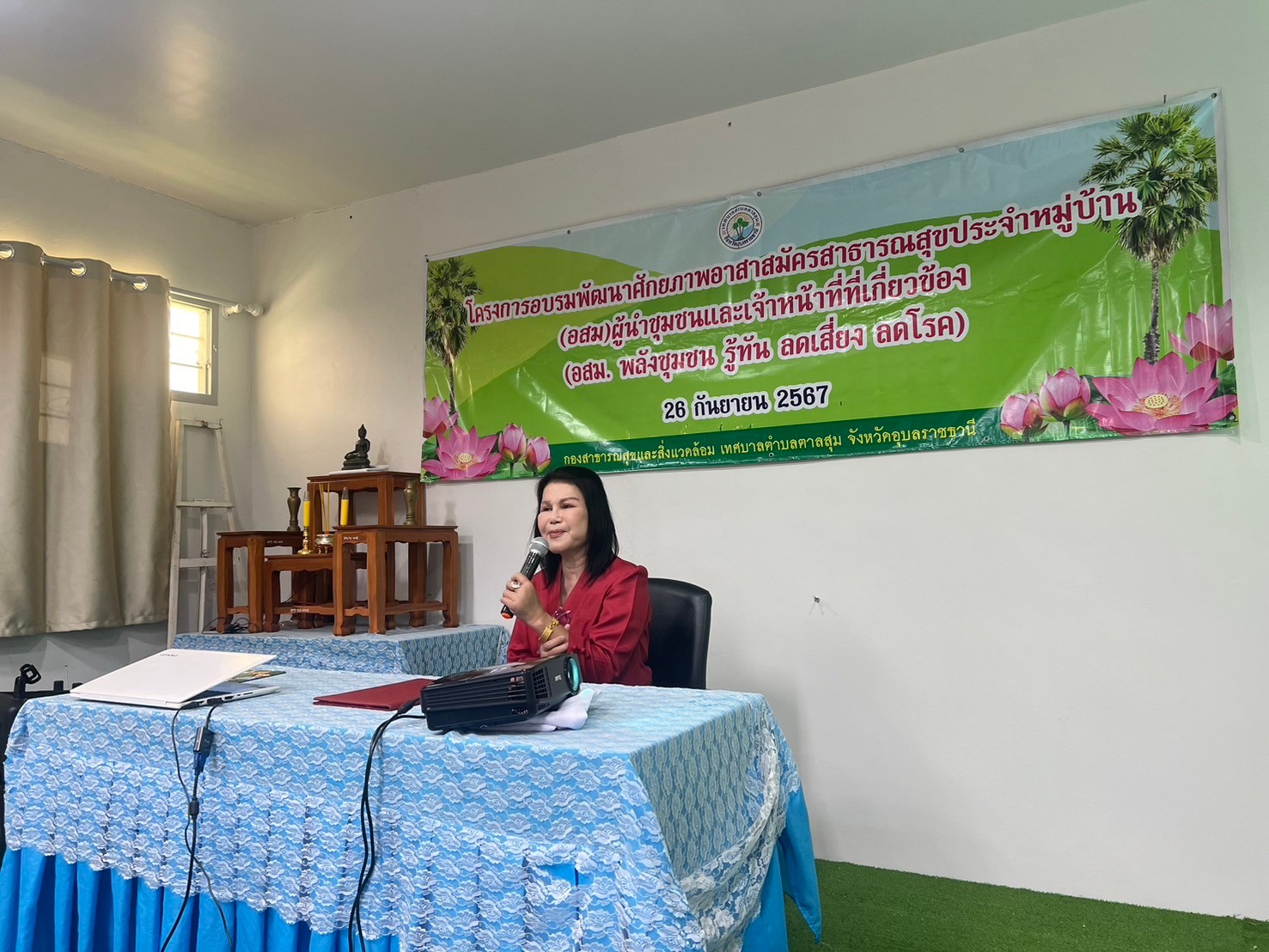 วันพฤหัสบดี, 26 กันยายน 2567 11:46โครงการพัฒนาศักยภาพอาสาสมัครสาธารณสุขประจำหมู่บ้าน (อสม) ผู้นำชุมชนและเจ้าหน้าที่ที่เกี่ยวข้อง (อสม.พลังชุมชน รู้ทันลดเสี่ยง ลดโรค) ประจำปี 2567 วัตถุประสงค์เพื่อส่งเสริมและสนับสนุนการมีส่วนร่วมของภาคประชาชนให้มีบทบาทในการดูแลและส่งเสริมสุขภาพของชุมชนได้เองเสริมสร้างและพัฒนาศักยภาพเครือข่ายสุขภาพที่มีอยู่ในชุมชนให้เข้มแข็งแลกเปลี่ยนข้อมูลข่าวสารรวมทั้งสถานบริการสาธารณสุขต้องมีการจัดกิจกรรมที่สามารถพัฒนาและปฏิบัติการโดยเน้นเชิงลุกพัฒนารูปแบบที่เป็นนวัตกรรมที่ใช้ความรู้มุ่งเน้นการปรับเปลี่ยนพฤติกรรมค่านิยมของประชาชนเกิดการพัฒนาพฤติกรรมสุขภาพที่ถูกต้องทำให้ลดอัตราเสี่ยงของการเกิดโรคให้ประชาชนมีสุขภาพดีถ้วนหน้าอย่างยั่งยืน