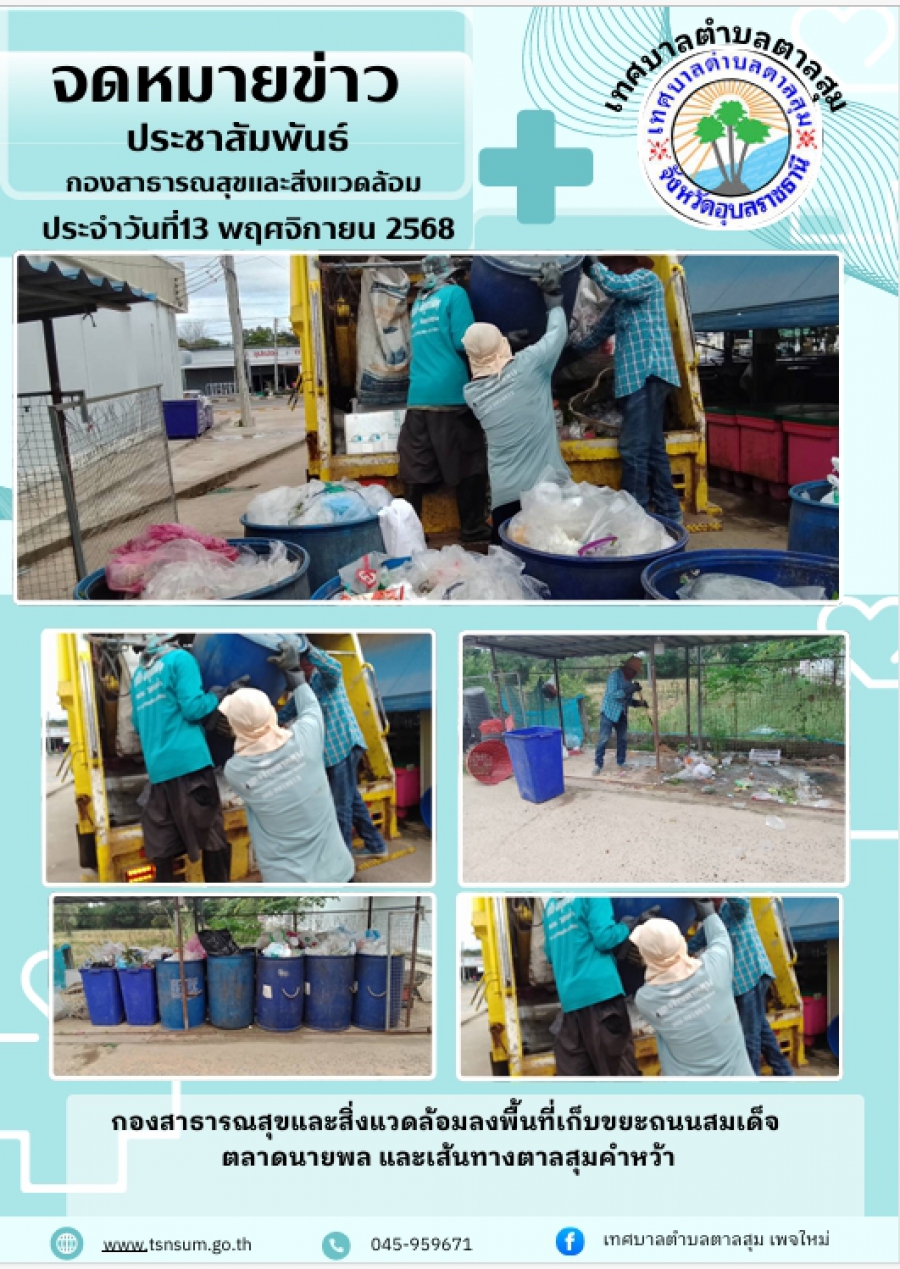 นางวรรณภา แก้วพรหม นายกเทศมนตรีตำบลตาลสุม มอบหมายให้กองสาธารณสุขและสิ่งแวดล้อม เก็บขยะ ตลาดนัดนายพล และในชุมชนในเขต เทศบาล วันพฤหัสบดี, 13 พฤศจิกายน 2568 11:40 พิมพ์ อีเมล แสดงความคิดเห็น ***กรุณาแสดงความคิดเห็น ด้วยความสุภาพ เคารพต่อสิทธิของผู้อื่น ไม่ละเมิดต่อกฎหมาย และศีลธรรมอันดีของสังคม ข้อความ * ใส่ความคิดเห็นของคุณ... ชื่อ * อีเมล * URL เว็บไซต์ของคุณ (ถ้ามี) back to top