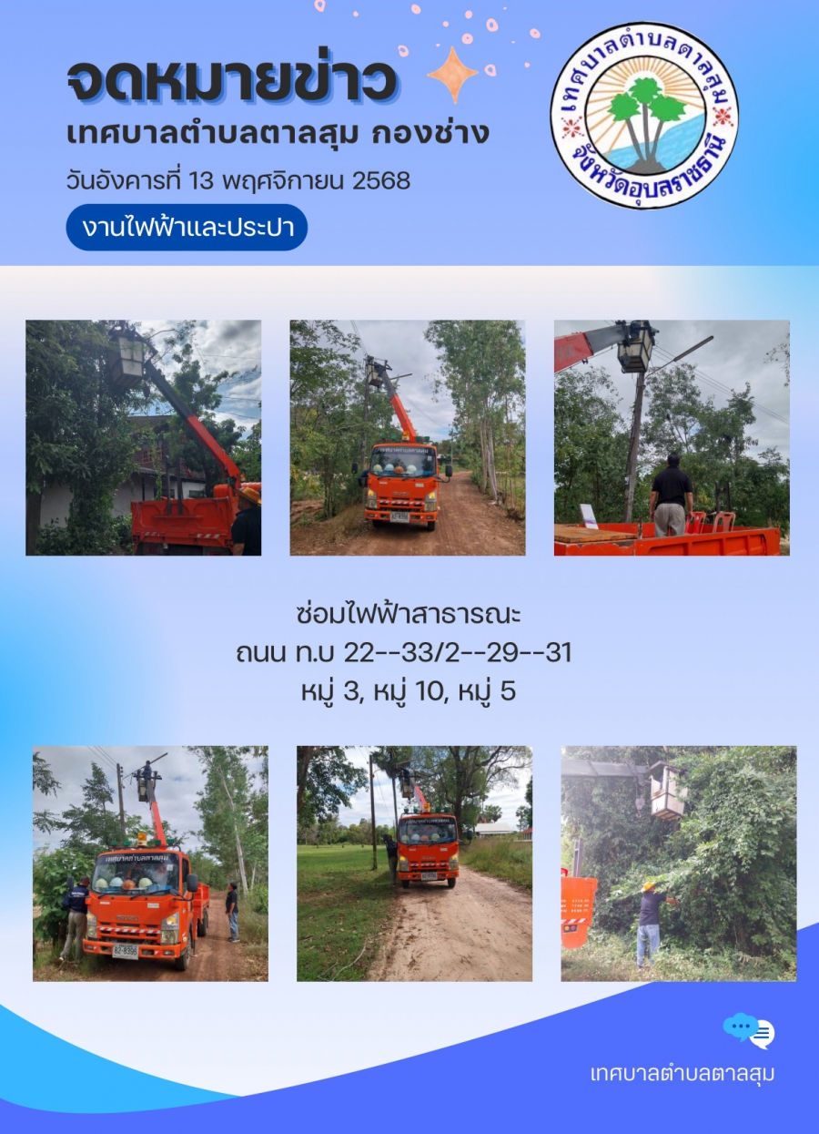 นางวรรณภา แก้วพรหม นายกเทศมนตรีตำบลตาลสุม มอบหมายให้ กองช่าง ซ่อมไฟสาธารณะถนน ทบ 22-33 โยธาธิการ บ้านนามนหมู่5/10 บ้านนาแคนหมู่3 วันพฤหัสบดี, 13 พฤศจิกายน 2568 11:44 พิมพ์ อีเมล แสดงความคิดเห็น ***กรุณาแสดงความคิดเห็น ด้วยความสุภาพ เคารพต่อสิทธิของผู้อื่น ไม่ละเมิดต่อกฎหมาย และศีลธรรมอันดีของสังคม ข้อความ * ใส่ความคิดเห็นของคุณ... ชื่อ * อีเมล * URL เว็บไซต์ของคุณ (ถ้ามี) back to top