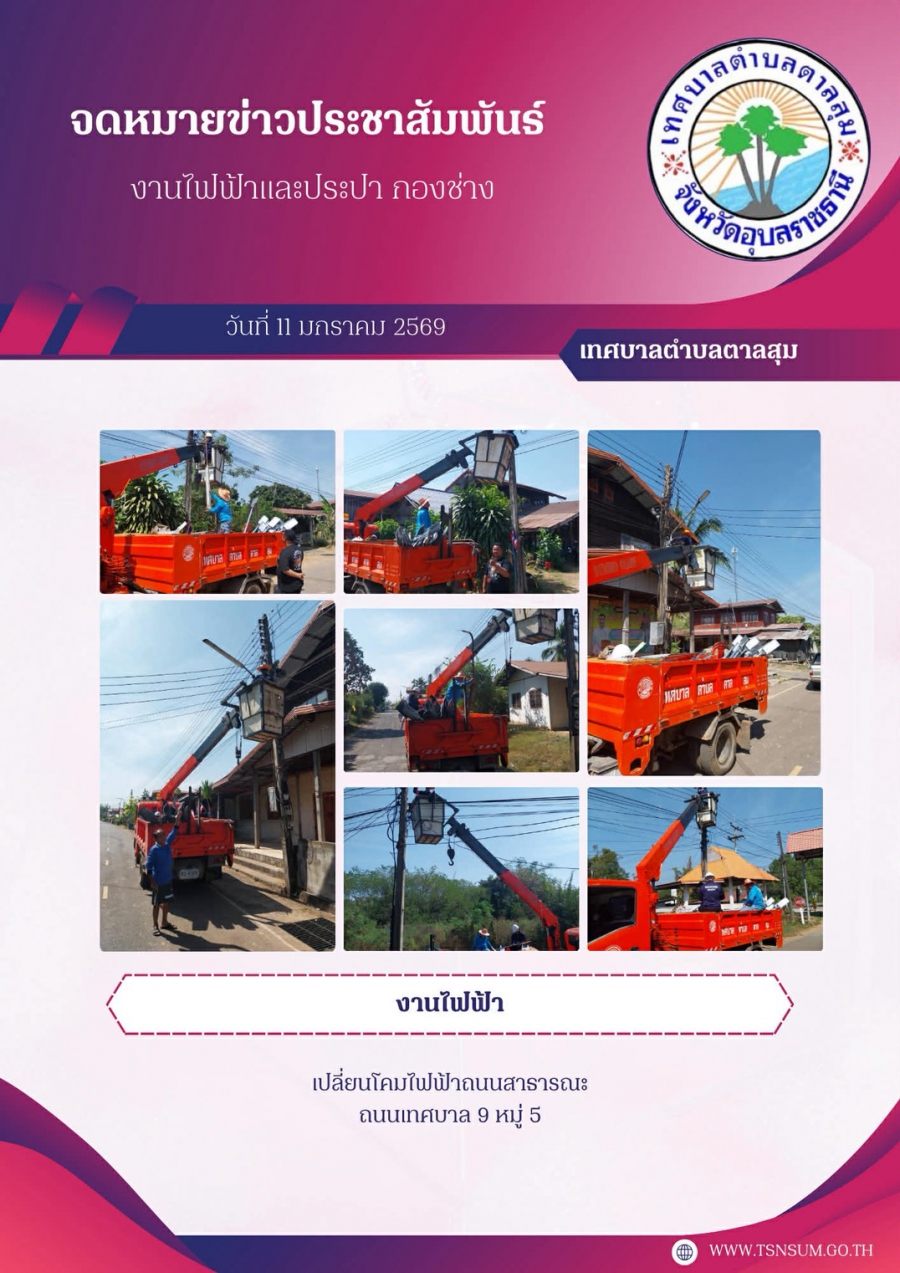 นางวรรณภา แก้วพรหม นายกเทศมนตรีตำบลตาลสุม มอบหมายให้ กองช่าง ซ่อมไฟฟ้าสาธารณะและเปลี่ยนโคมไฟถนน บ้านนามนหมู่5หมู่10 วันพุธ, 11 กุมภาพันธ์ 2569 15:29 พิมพ์ อีเมล แสดงความคิดเห็น ***กรุณาแสดงความคิดเห็น ด้วยความสุภาพ เคารพต่อสิทธิของผู้อื่น ไม่ละเมิดต่อกฎหมาย และศีลธรรมอันดีของสังคม ข้อความ * ใส่ความคิดเห็นของคุณ... ชื่อ * อีเมล * URL เว็บไซต์ของคุณ (ถ้ามี) back to top