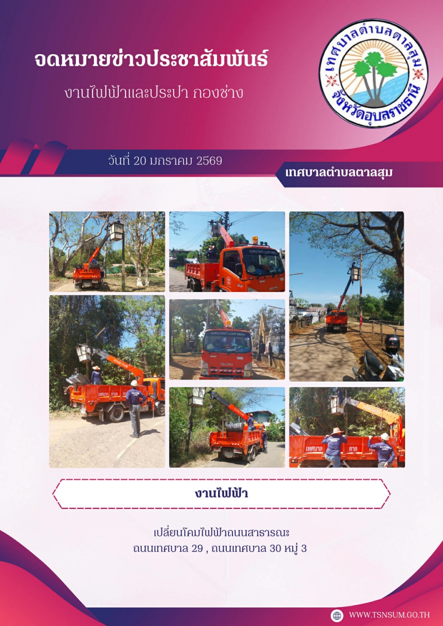 นางวรรณภา แก้วพรหม นายกเทศมนตรีตำบลตาลสุม มอบหมายให้ กองช่าง ซ่อมไฟฟ้าสาธารณะและเปลี่ยนโคมไฟถนน บ้านนาห้วยแคนหมู่3 วันศุกร์, 20 กุมภาพันธ์ 2569 09:17 พิมพ์ อีเมล แสดงความคิดเห็น ***กรุณาแสดงความคิดเห็น ด้วยความสุภาพ เคารพต่อสิทธิของผู้อื่น ไม่ละเมิดต่อกฎหมาย และศีลธรรมอันดีของสังคม ข้อความ * ใส่ความคิดเห็นของคุณ... ชื่อ * อีเมล * URL เว็บไซต์ของคุณ (ถ้ามี) back to top