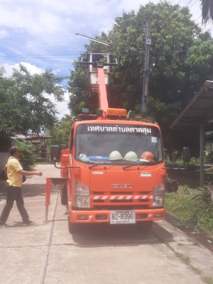 วันที่ 7 กรกฏาคม 2566 นางวรรณภา แก้วพรหม นายกเทศมนตรีตำบลตาลสุม มอบหมายงานให้ *****กองช่าง ติดไฟฟ้าแสงสว่างงานบุญ100วันบ้านนามน ม.5